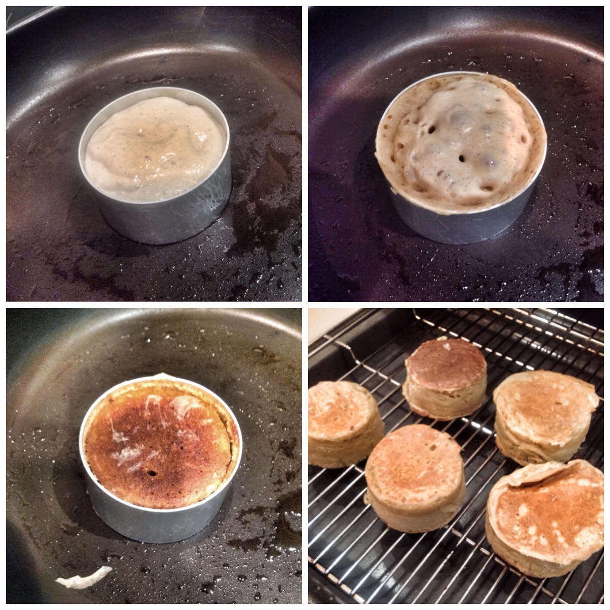 I don’t know what it is ever since watching Paul Hollywood make crumpets from scratch on telly I’ve always wanted to give It a go. I had never realised to be honest that you could make them, believing they were some mythical, hot, carrier of butter concocted in a secret den in the North by Warburtons. However at a loose end one Saturday afternoon I decided to give them a crack. The recipe below is by Paul Hollywood and makes about 10 crumpets. It pretty much worked. Greasing the rings is important as they can be a pain to get out, especially as the rings are hot. Mine seemed to come out a bit too thick but still tasted great and had a nice light fluffy texture inside. I served mine with some hot buttered, Morecambe bay shrimps slaverred on top, but ‘The Flame’ had scrambled eggs on hers and loved them as well.