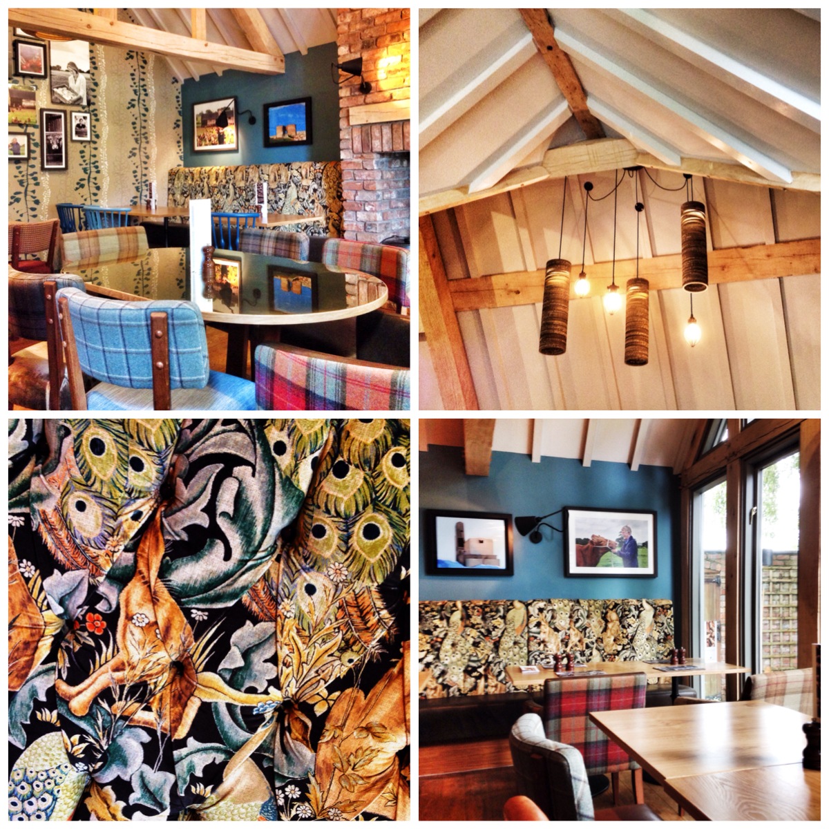 It’s fairly clear some serious wedge has left the wallet of the RVI encumbents. A substantial, mock tudor hangar has been grafted on to the original modest dwelling. Some of the timbers looked real! The decor and fittings are all top notch. The colour scheme and material selection is exactly how you would never do it at home, but somehow it works. A complete mismatch of materials, colours and patterns, fused by the dominance of petrol blue and cream. I even think there was a dead parrot on one of the fabrics. It had nice plumage anyway. The tables and chairs are smart, contemporary, comfortable and well sized for the job in hand.