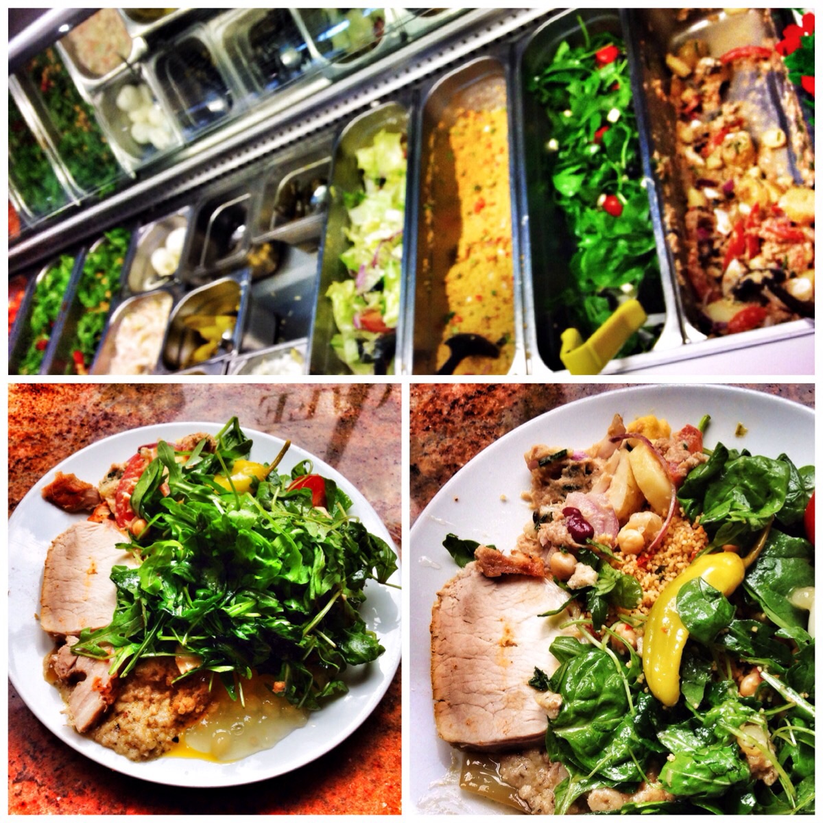 The salad bins, roast pork and bags of greenery!