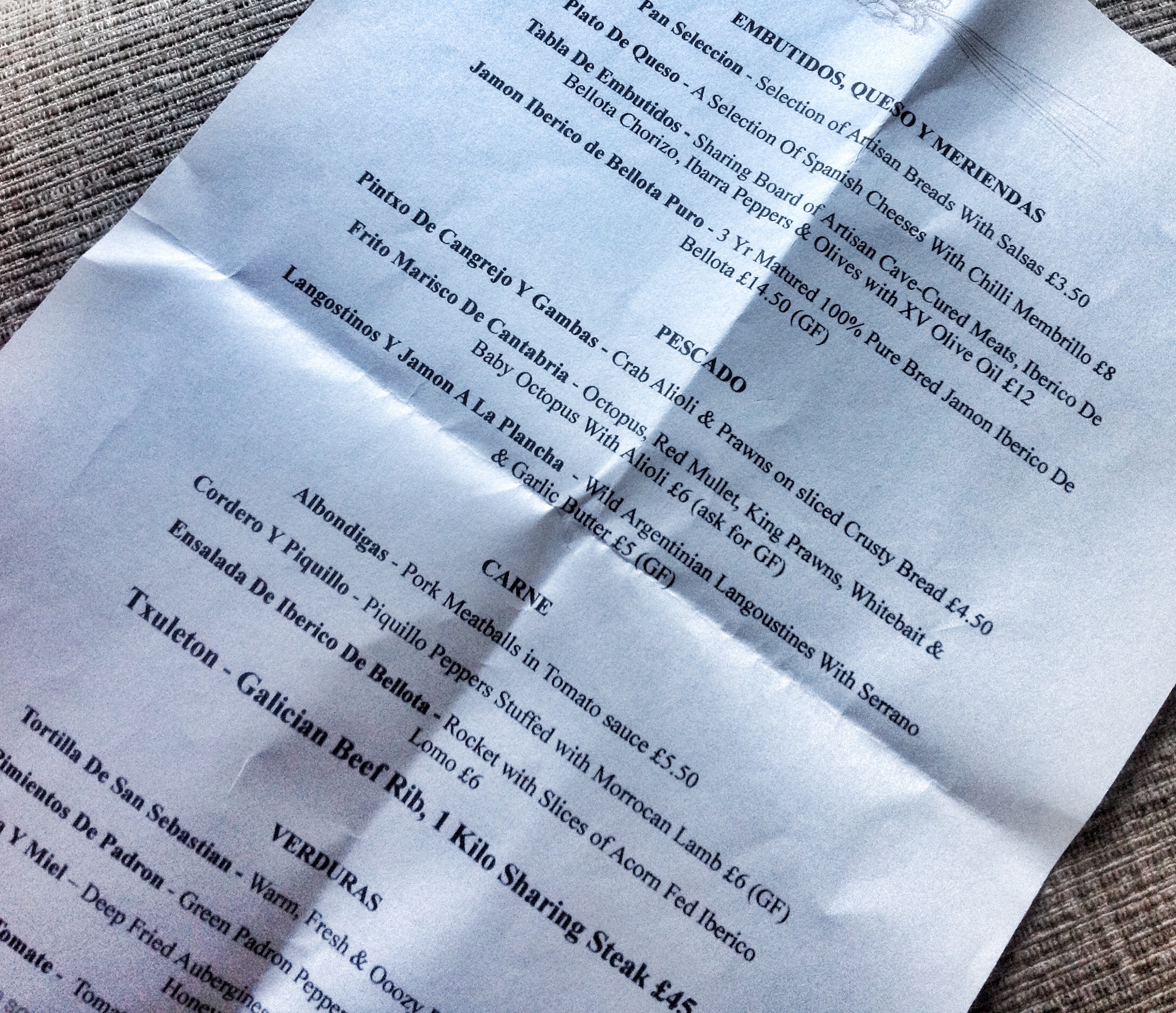 Costillas Ibericás (£7.75) slow roasted ribs from the giant Ibericó pigs, falling off the bone, in a special Catalan BBQ sauce with tamarind, orange and fennel seed. Pic of the dishes. Arguably the finest ribs I’ve ever eaten. The sauce with the fennel was simply ‘historic’.