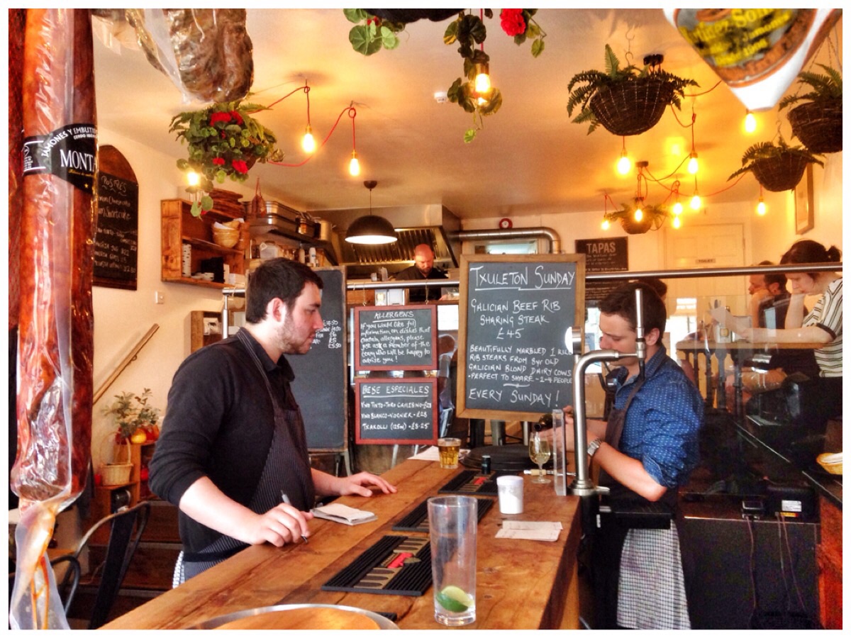 I have to say all the dishes were delivered hot and fresh. Bill came to £66 for the two of us. Sam our new, spanish, waitress was bubbly, efficient and helpful. I’ll definitely be back. There are too many wonderful dishes on the menu that have to be tried yet. I reckon a casual slide in the bar next. Pull up a pew, a glass of Rioja, those ribs again and then start hitting the fish dishes. It looks like I’ll be back many times yet. Highly recommended. Oh and they do paella… forgot about that, so yes got to go back.