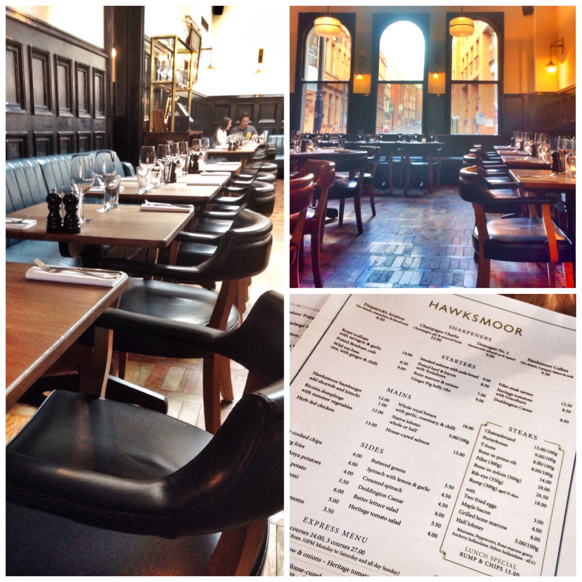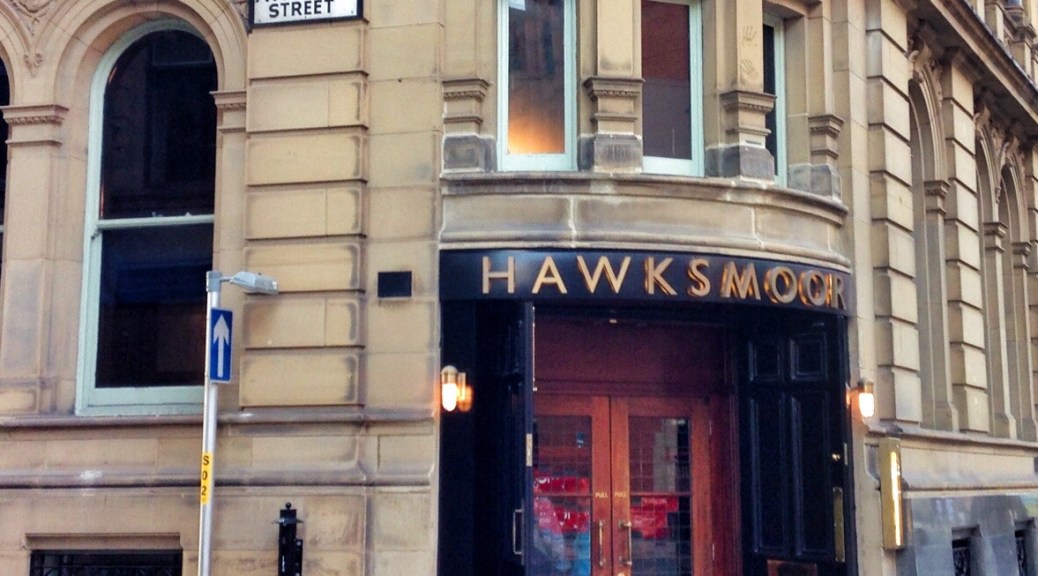 Its set up a ginnel, which itself is shrouded from the world by tram works. It takes some finding at the moment. It’s a grand place. You enter down a small staircase in to an old, wooden bar area. A seated bronze of LS Lowry doffs his hat. A pleasant welcome. A few pints of Bootleg ‘Lawless’ for the non-drivers was eagerly devoured. It was early on a Tuesday night. I had booked but didn’t really need to. The pub had a few in, but the restaurant was empty. The eating area is rather elegant. Mosaic tiles on the floor, with rich stained booths and fittings completing the old world charm. It’s very pleasant, though it was a little chilly at first.